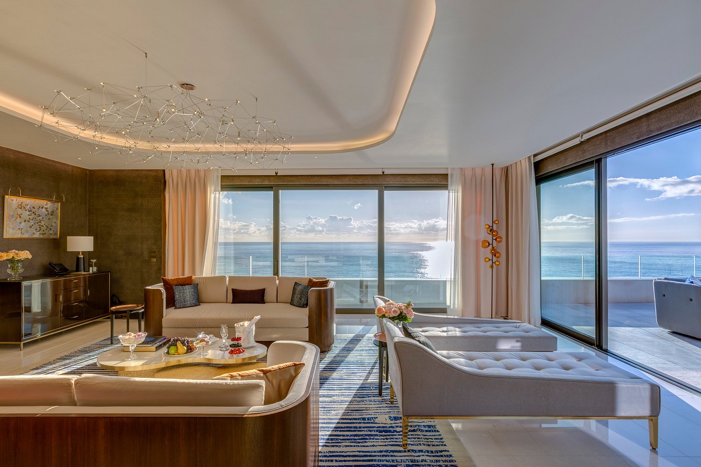At the heart of Place du Casino, Hôtel de Paris spans 110 rooms and 96 suites within its historic colonnaded façade. The interiors blend Venetian mirrors, marble colonnades and Murano chandeliers with discreet modern comfort. The 2024 suite renovation refreshed bedroom décor while preserving carved gilt and vaulted ceilings—a timeless elegance maintained in the world’s most celebrated addres