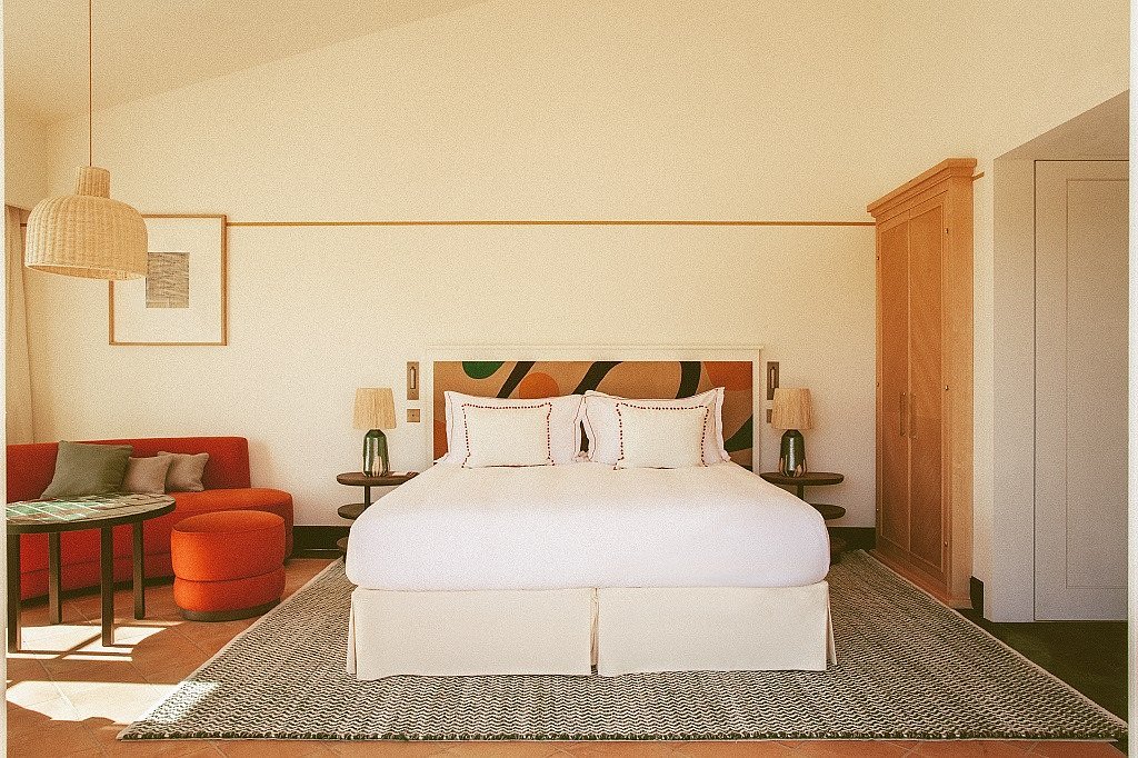 Lou Pinet blends French Riviera ease with residential disguise just off Place des Lices. Designed by Charles Zana and François Vieillecroze, its 34 individually styled rooms and suites feel like private villa chapters—each a unique mix of pastel textures, ceramics and tropezian vintage. The gardens by Jean Mus cocoon shaded courtyards and terraces, and the property exudes casual elegance: chic without pretension, bold but never ostentatious.